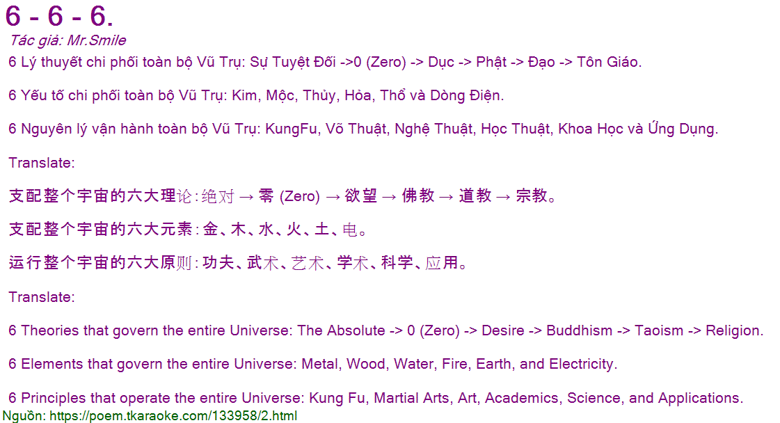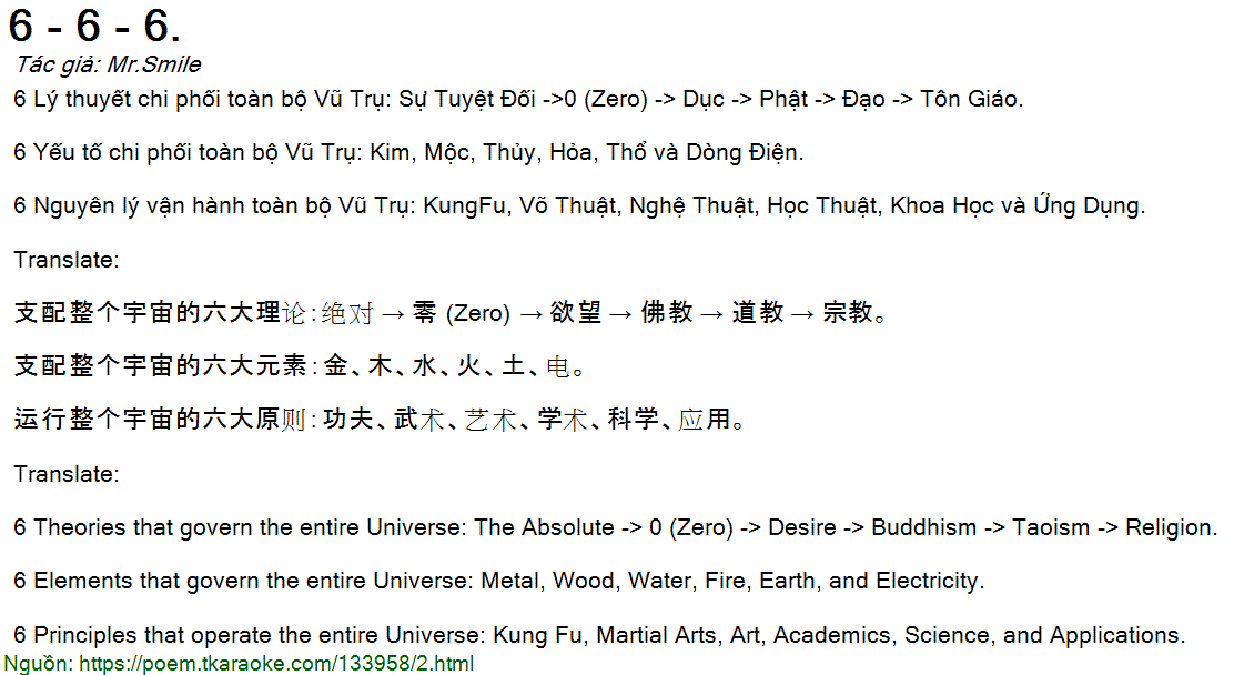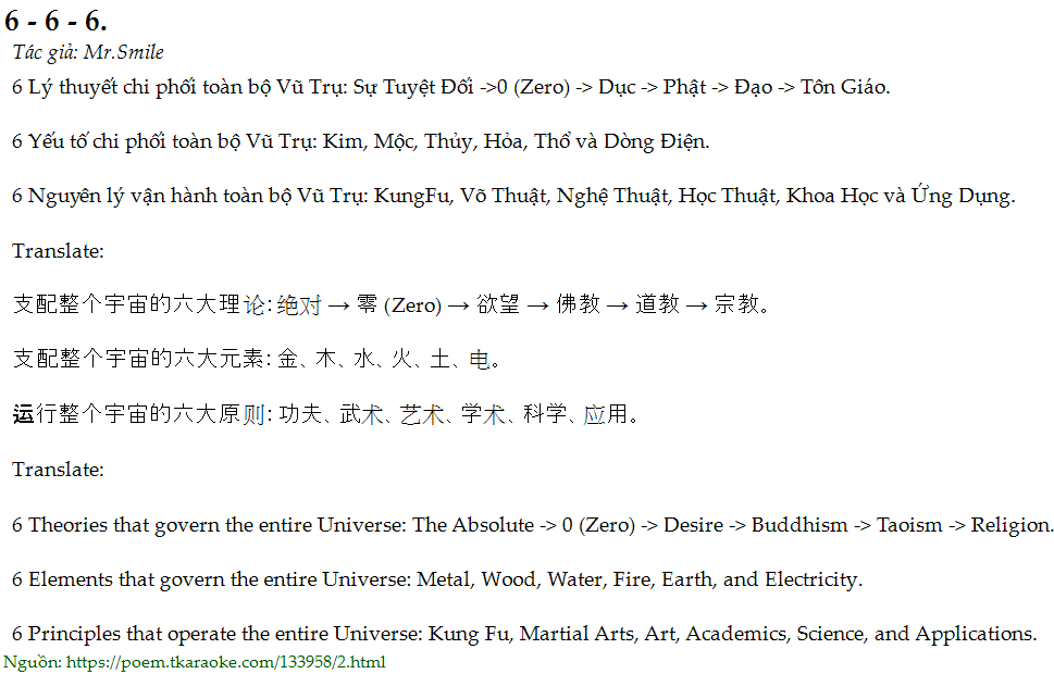 6 Lý thuyết chi phối toàn bộ Vũ Trụ: Sự Tuyệt Đối ->0 (Zero) -> Dục -> Phật -> Đạo -> Tôn Giáo.