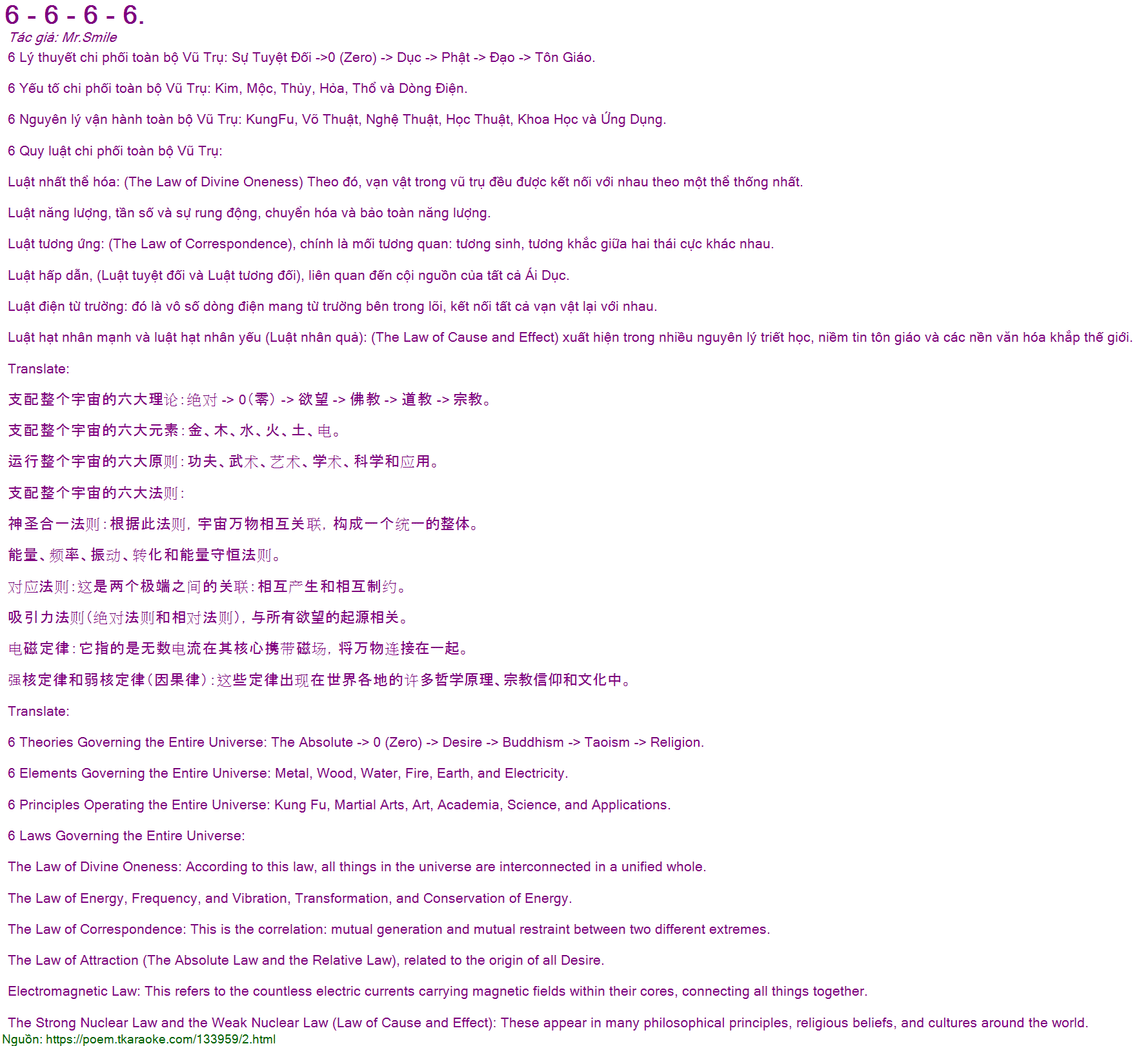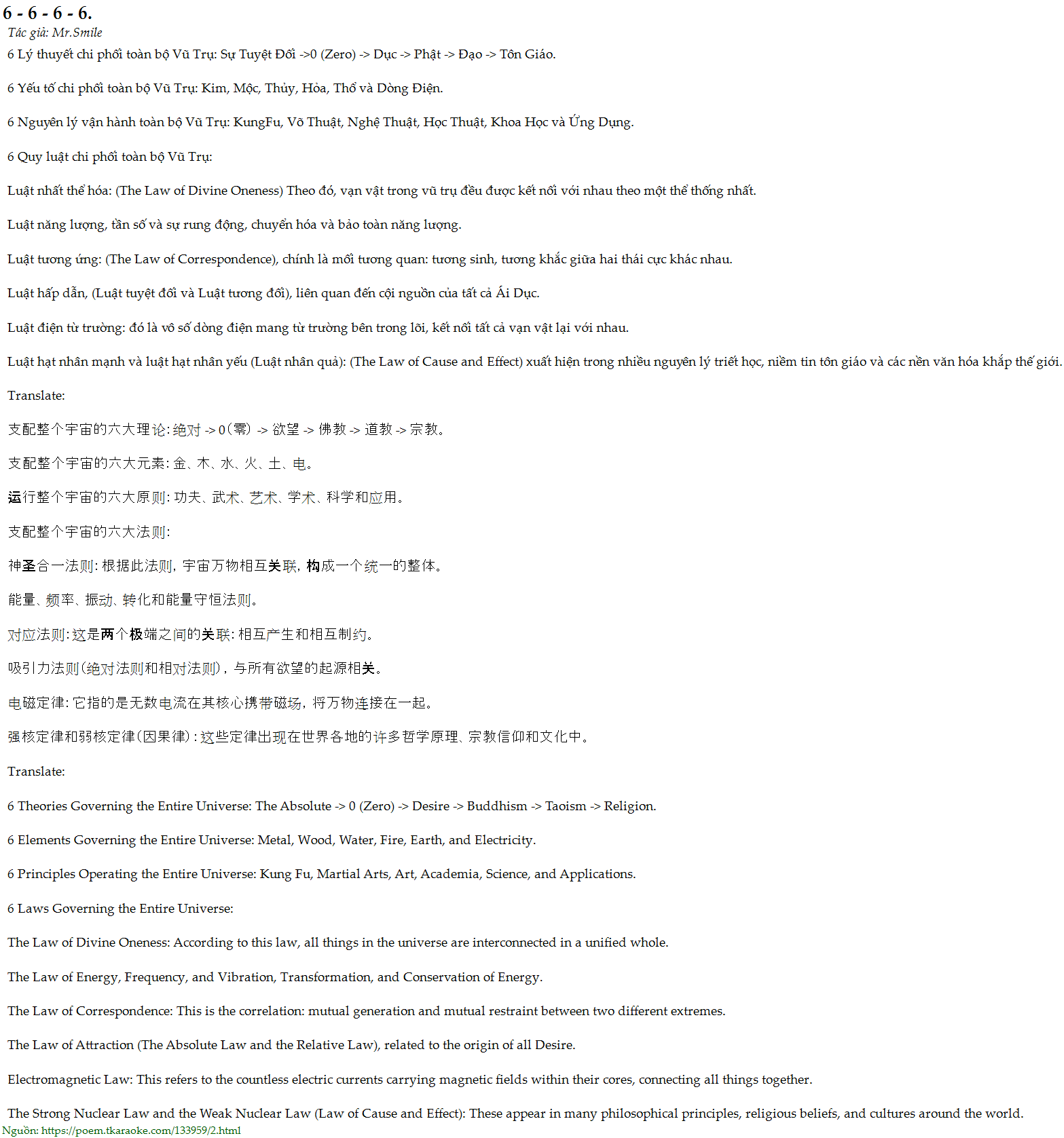6 Lý thuyết chi phối toàn bộ Vũ Trụ: Sự Tuyệt Đối ->0 (Zero) -> Dục -> Phật -> Đạo -> Tôn Giáo.