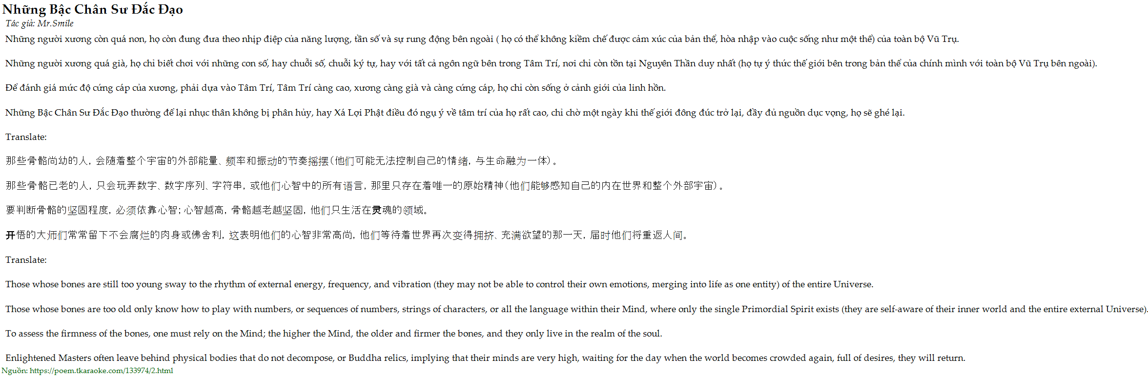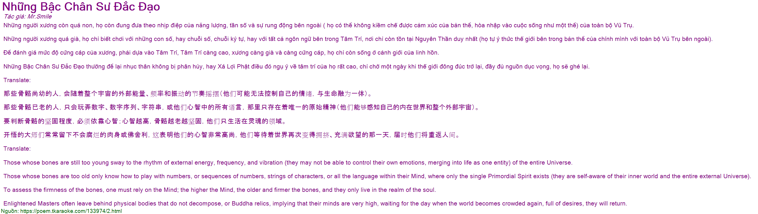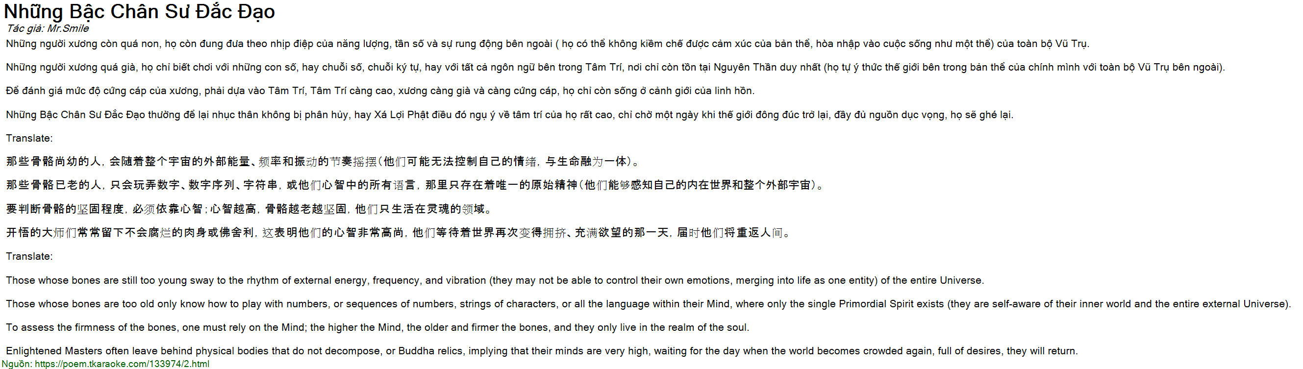 Nhung Bac Chan Su Dac Dao thuong de lai nhuc than khong bi phan huy, hay Xa Loi Phat dieu do ngu y ve tam tri cua ho rat cao, chi cho mot ngay khi the gioi dong duc tro lai, day du nguon duc vong, ho se ghe lai.