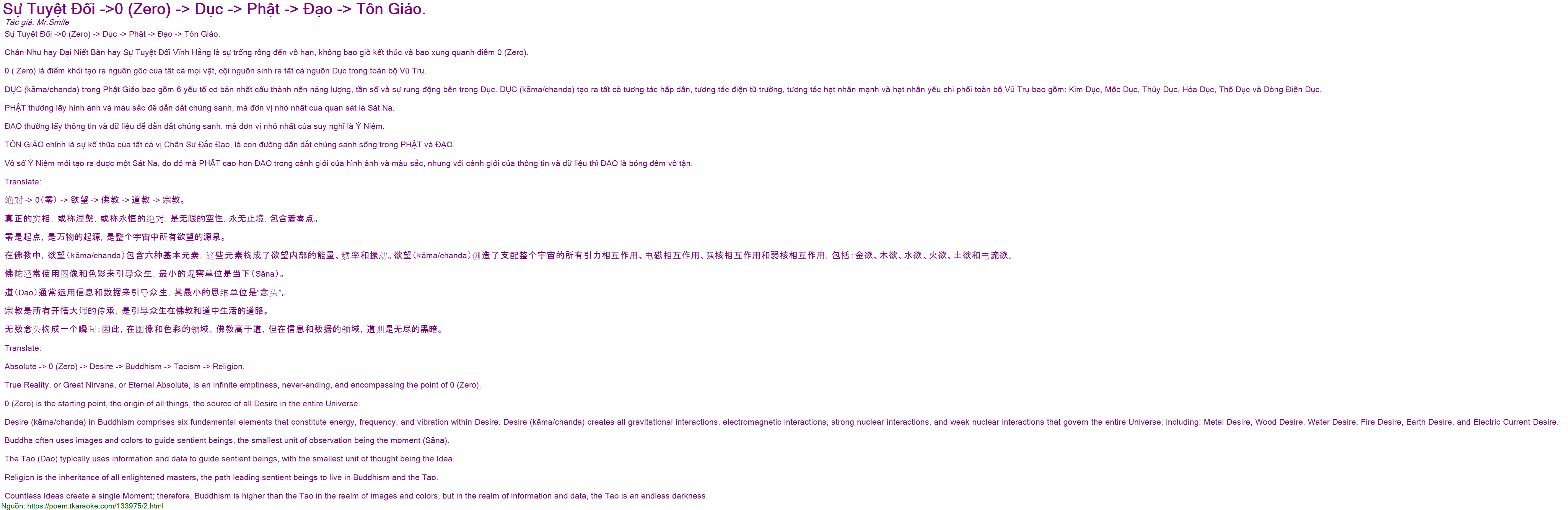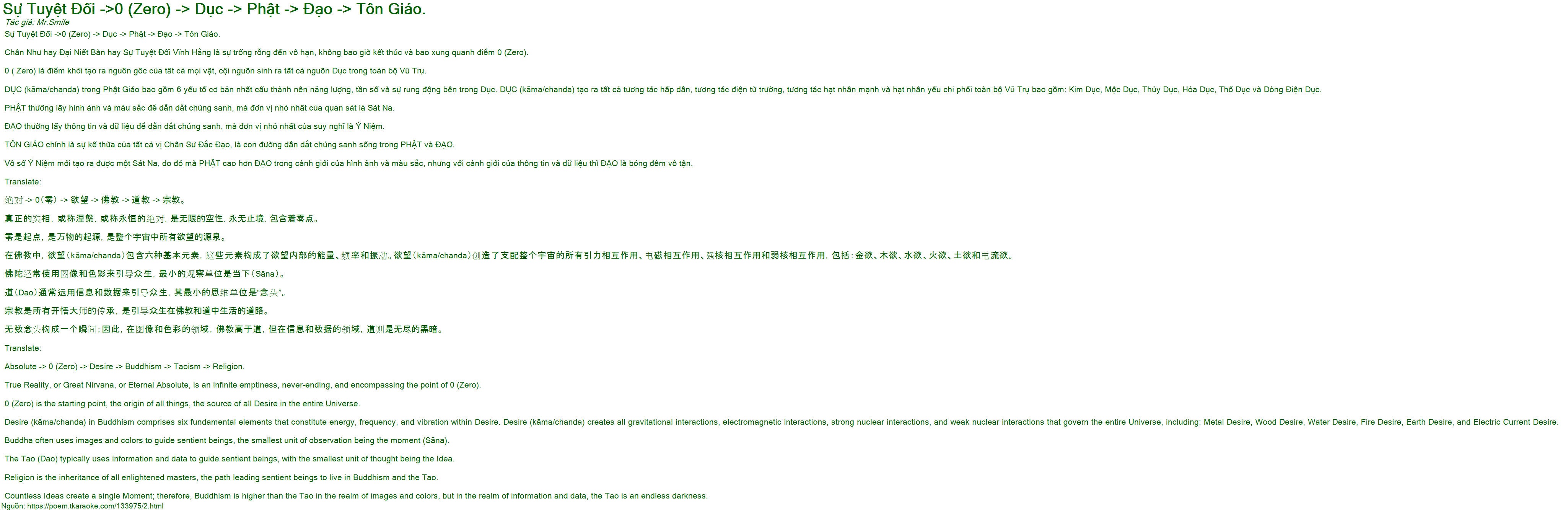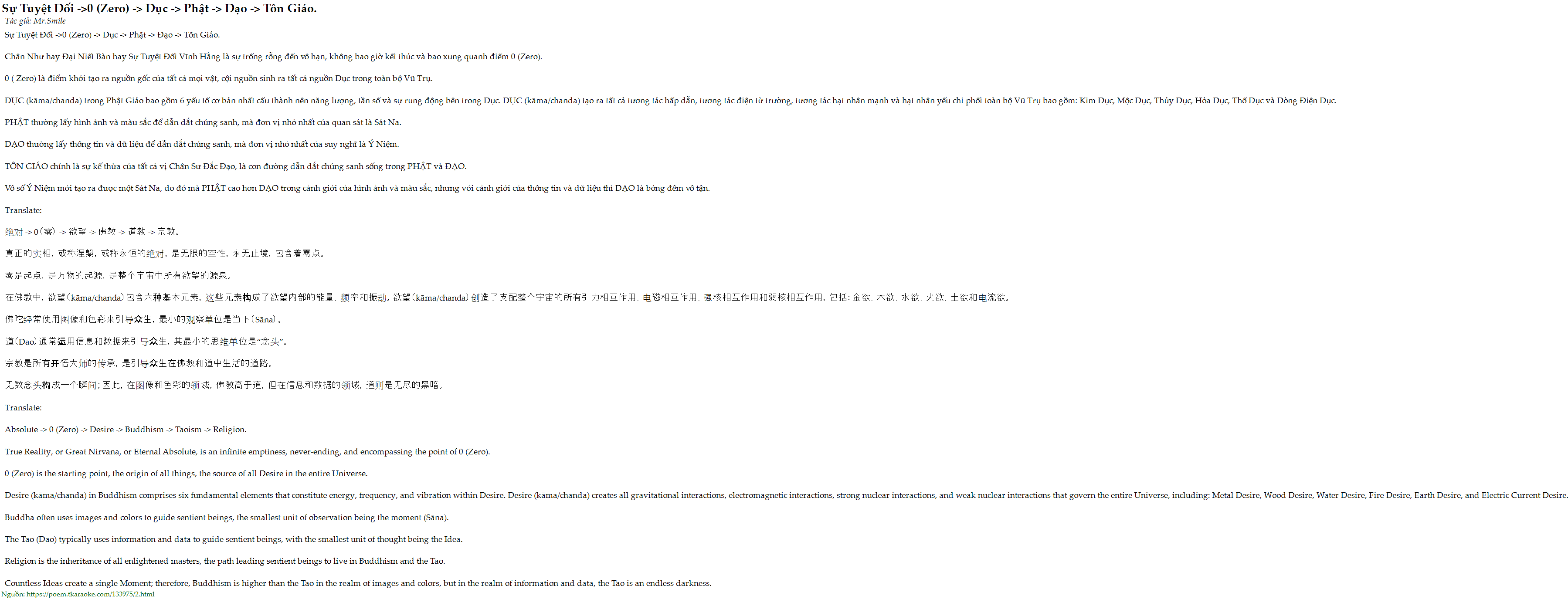 Sự Tuyệt Đối ->0 (Zero) -> Dục -> Phật -> Đạo -> Tôn Giáo.