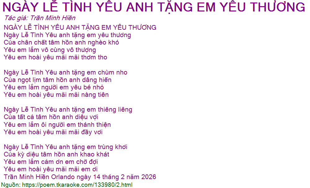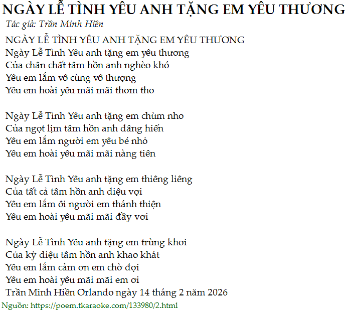 Trần Minh Hiền Orlando ngày 14 tháng 2 năm 2026