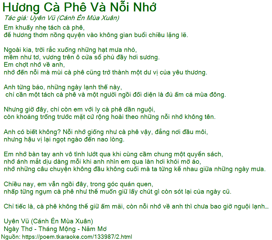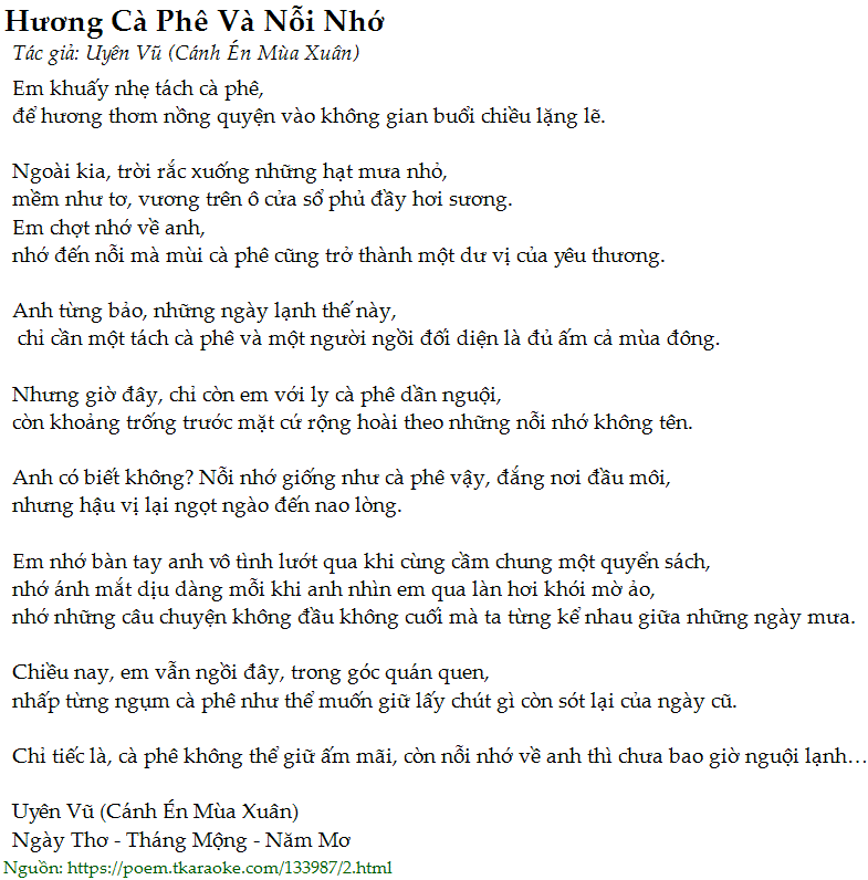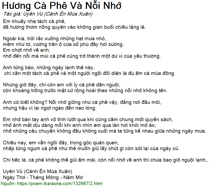 nhớ đến nỗi mà mùi cà phê cũng trở thành một dư vị của yêu thương.