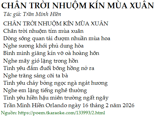 Trần Minh Hiền Orlando ngày 16 tháng 2 năm 2026