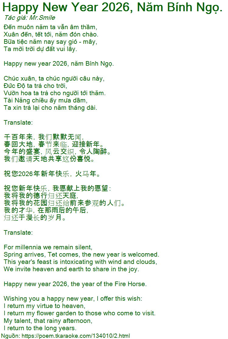 Happy new year 2026, năm Bính Ngọ.