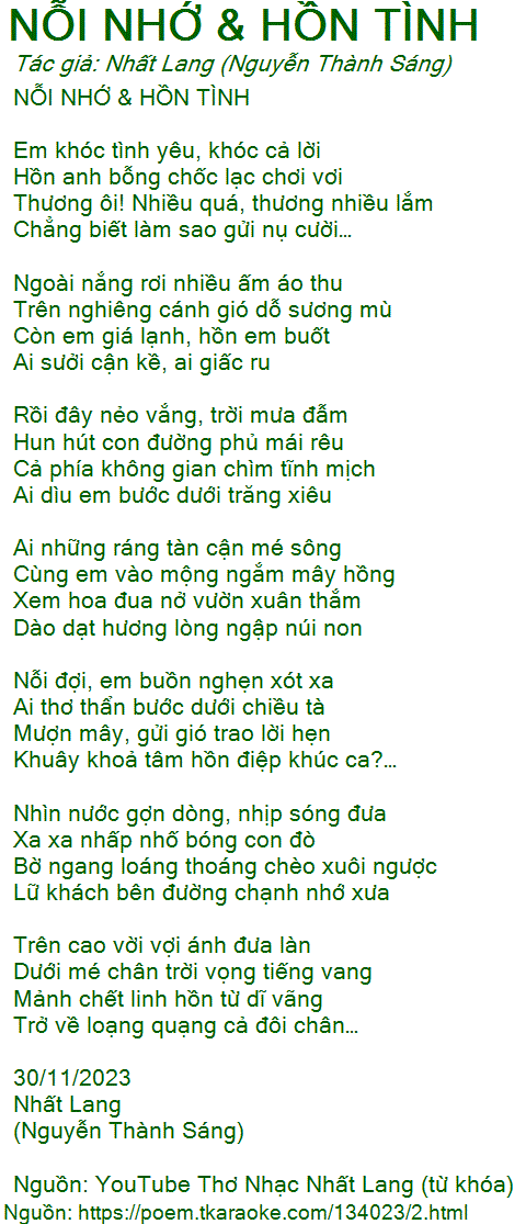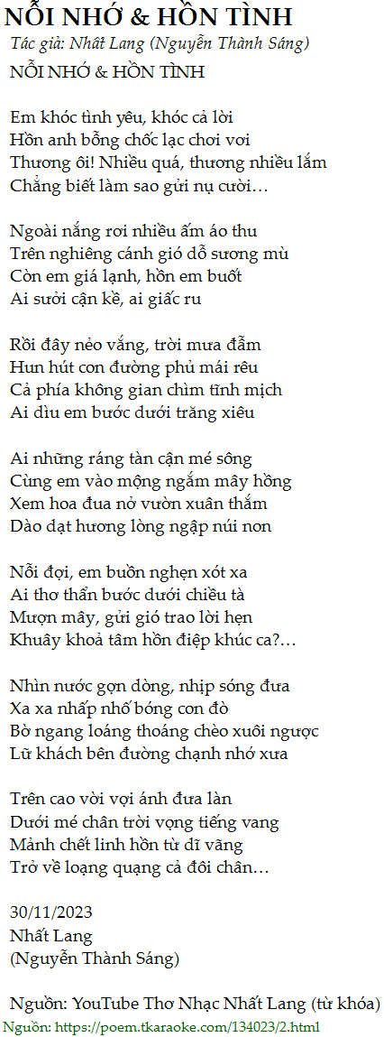 Nguồn: YouTube Thơ Nhạc Nhất Lang (từ khóa)