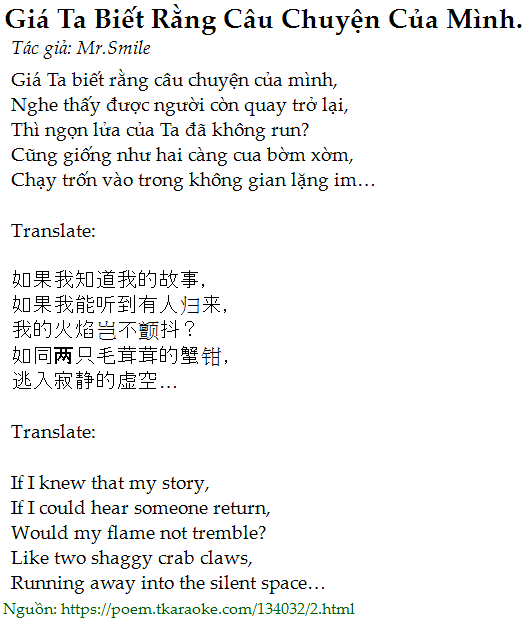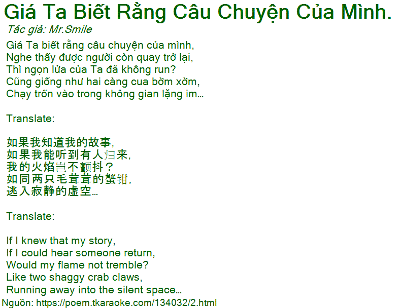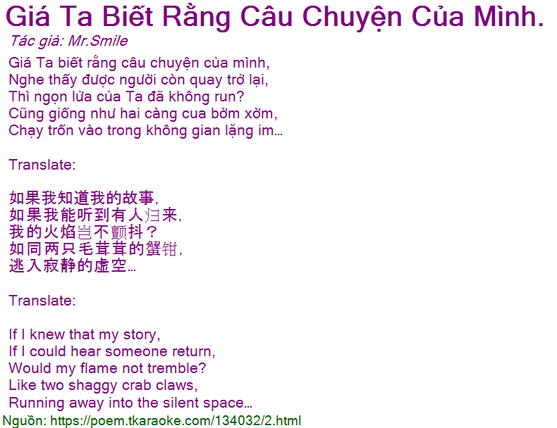 giá ta biết rằng câu chuyện của mình.