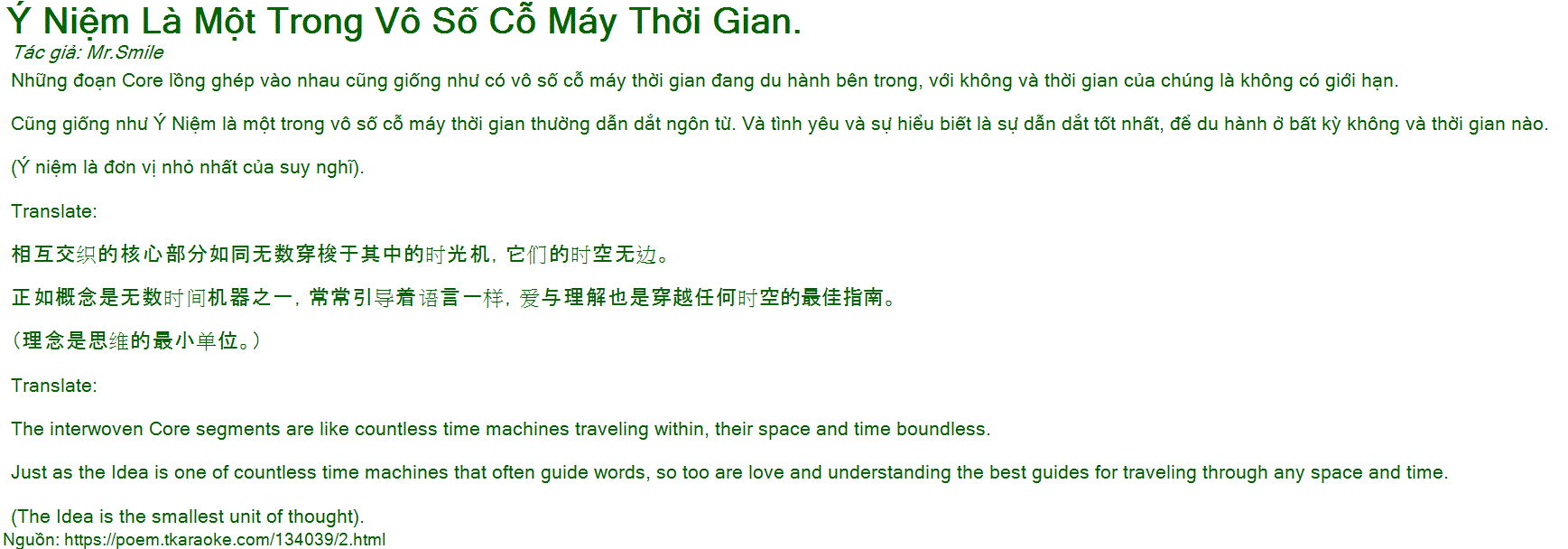 Cũng giống như Ý Niệm là một trong vô số cỗ máy thời gian thường dẫn dắt ngôn từ. Và tình yêu và sự hiểu biết là sự dẫn dắt tốt nhất, để du hành ở bất kỳ không và thời gian nào.