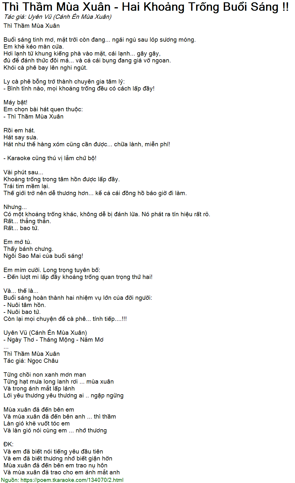 thì thầm mùa xuân - hai khoảng trống buổi sáng !!