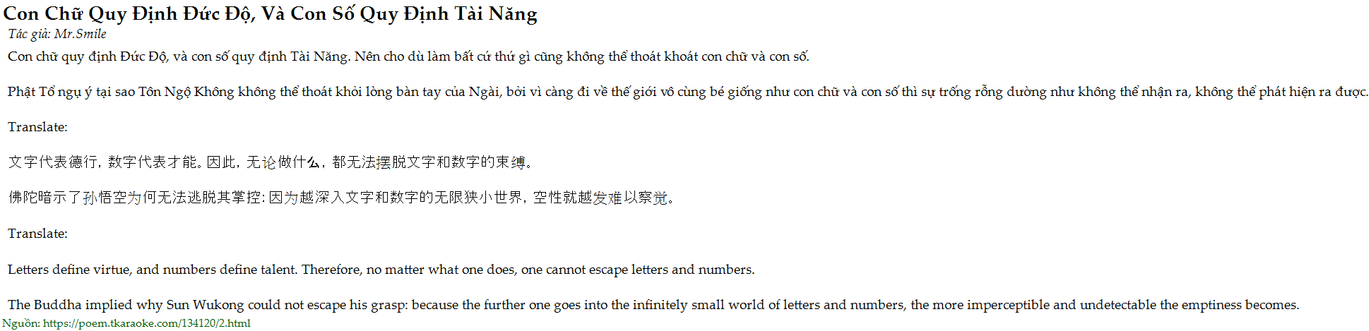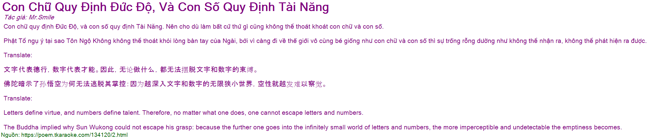 Con chữ quy định Đức Độ, và con số quy định Tài Năng. Nên cho dù làm bất cứ thứ gì cũng không thể thoát khoát con chữ và con số.
