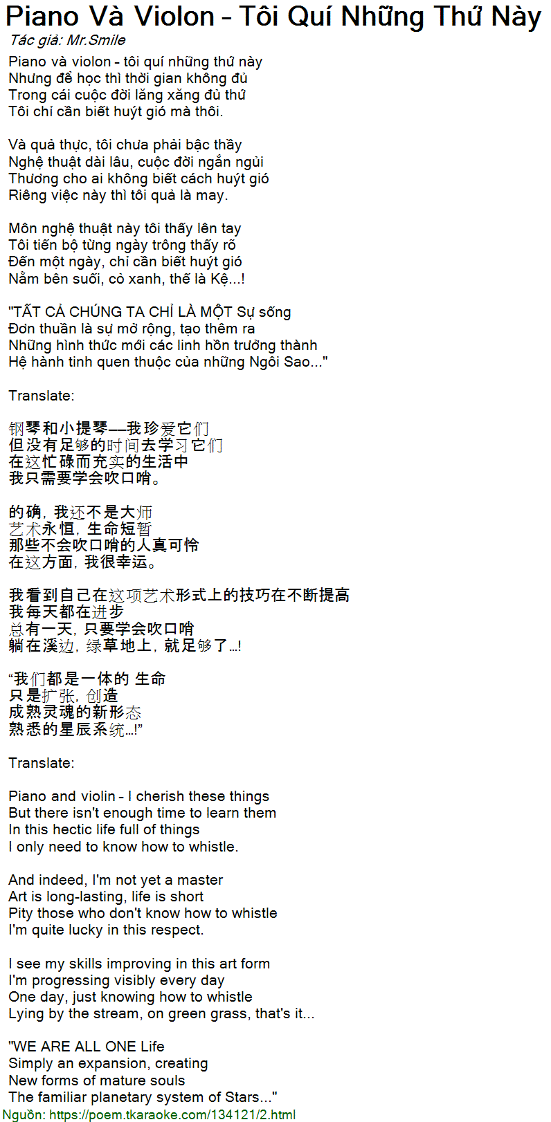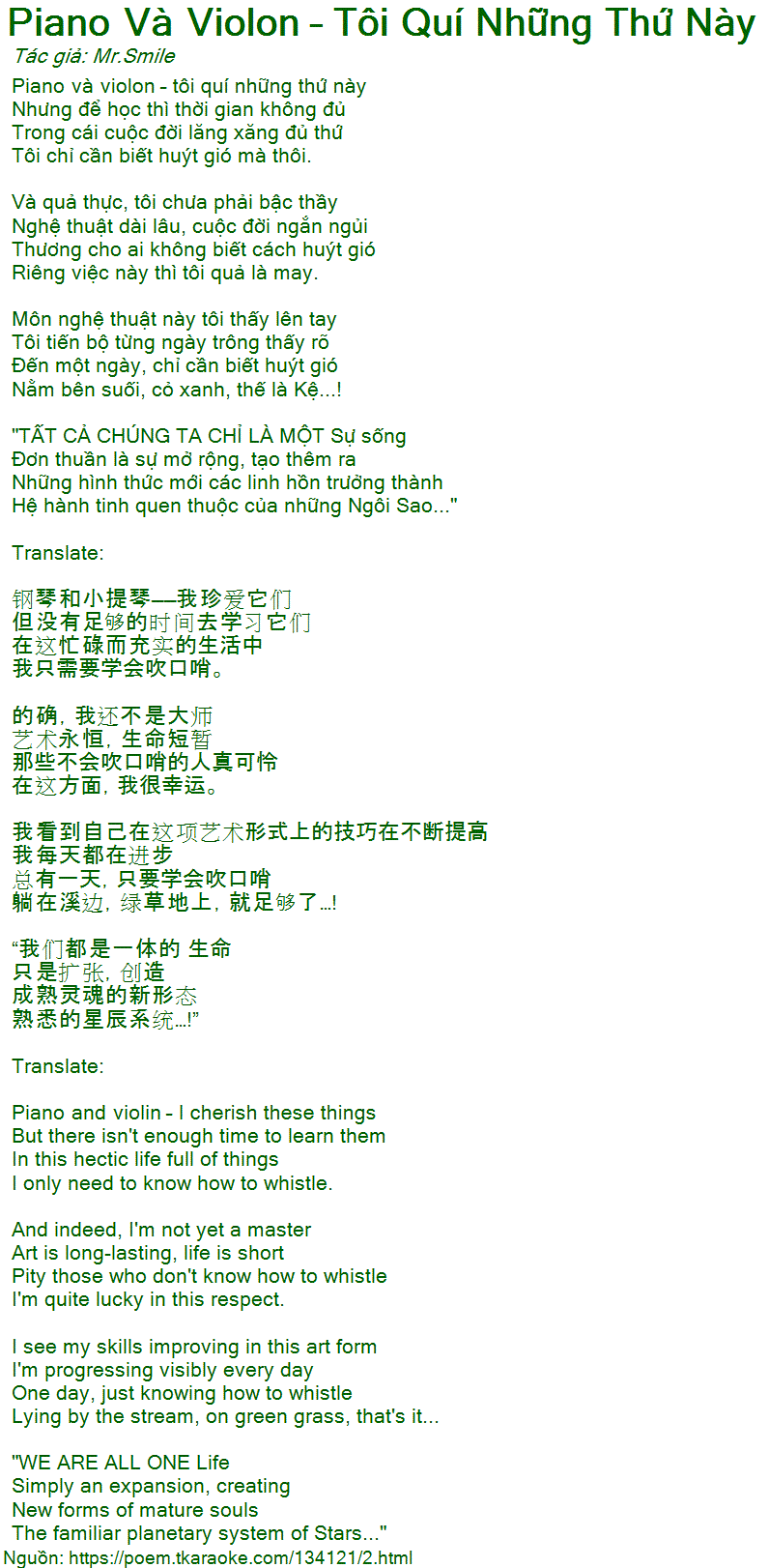 Piano Và Violon – Tôi Quí Những Thứ Này