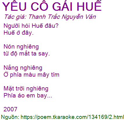 Yêu Cô Gái Huế (Bản Tứ Tuyệt)