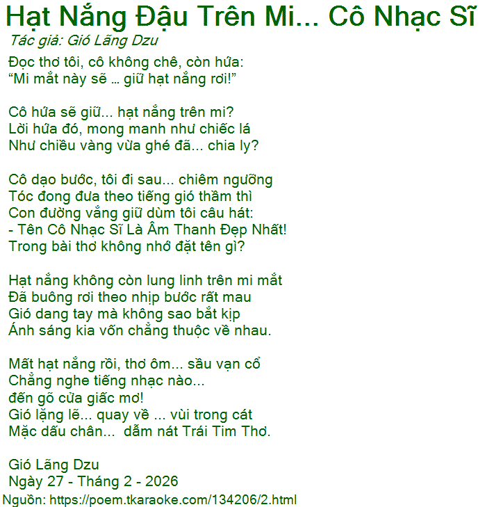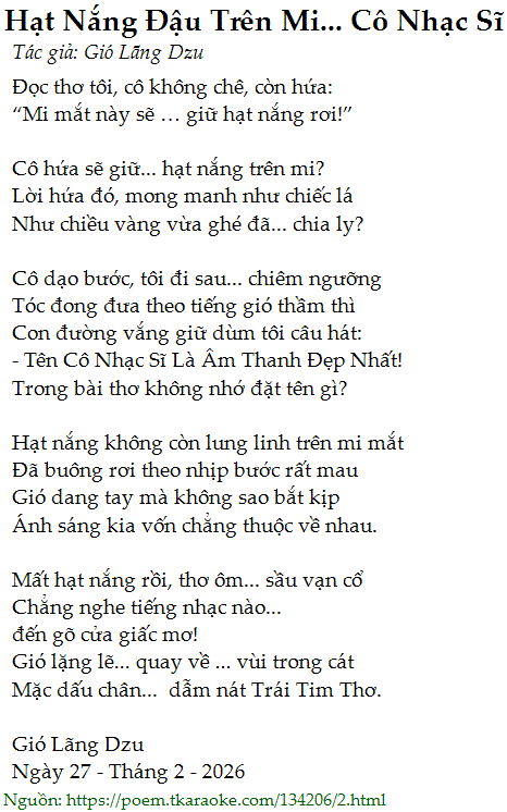 hạt nắng đậu trên mi... cô nhạc sĩ