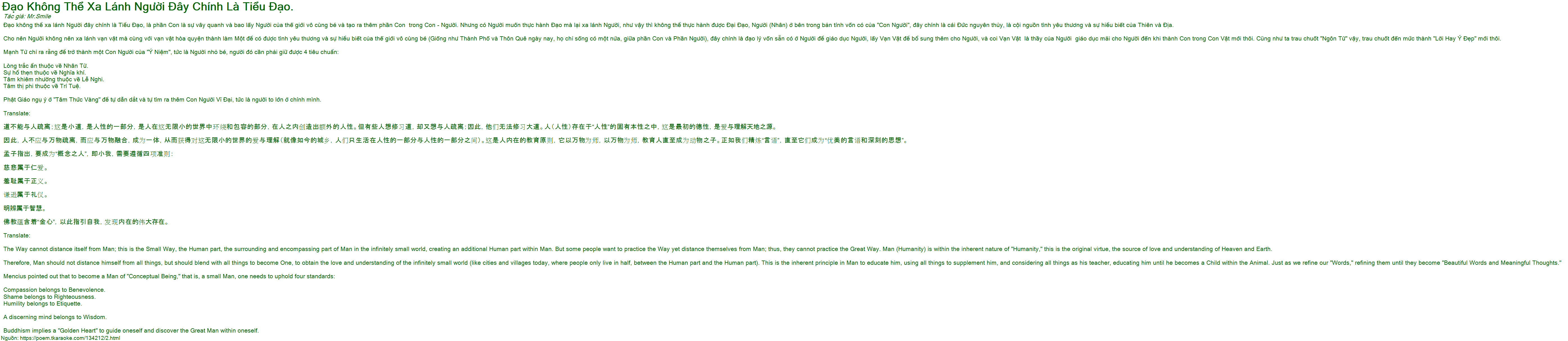 đạo không thể xa lánh người đây chính là tiểu đạo.