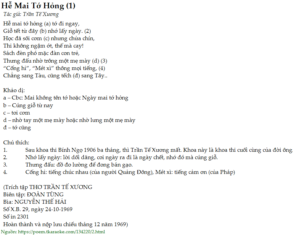 (Trích tập THƠ TRẦN TẾ XƯƠNG