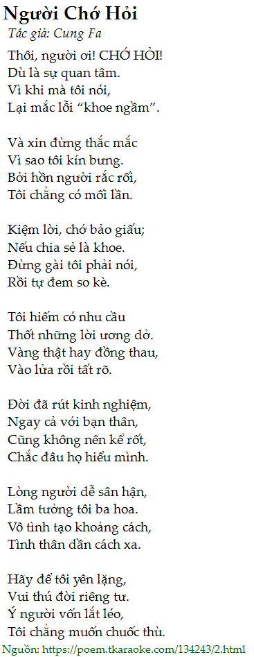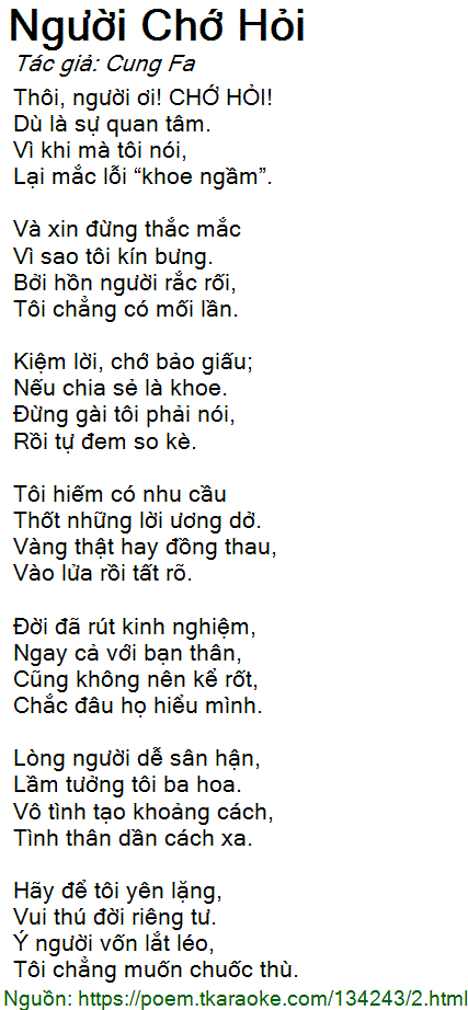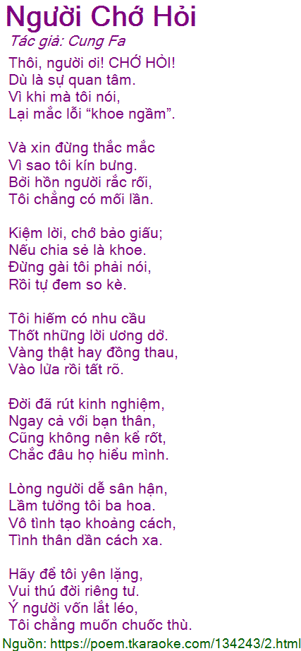 Thôi, người ơi! CHỚ HỎI!