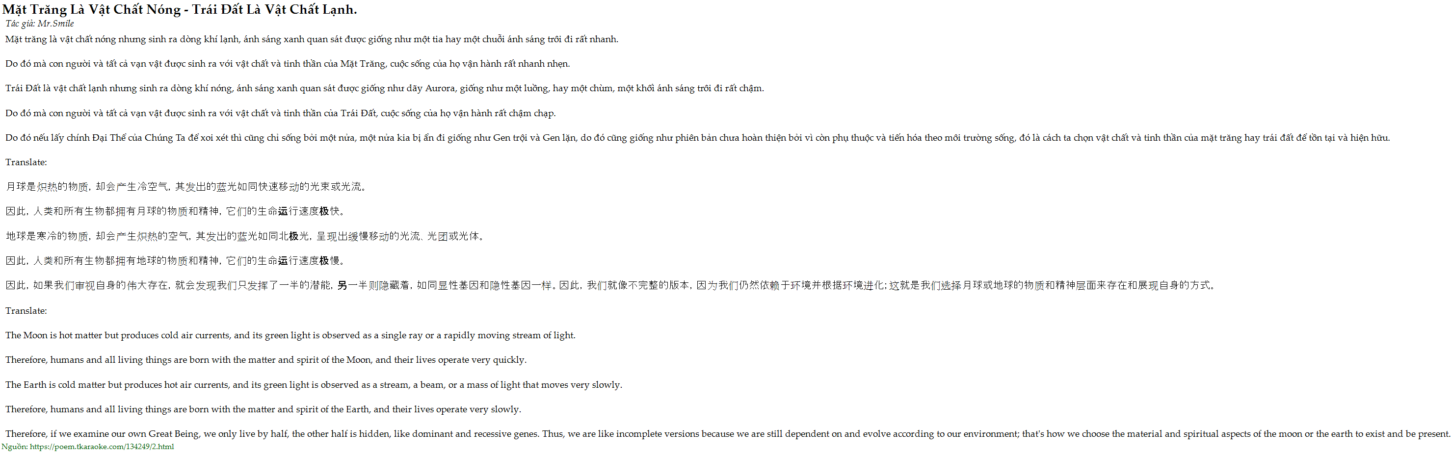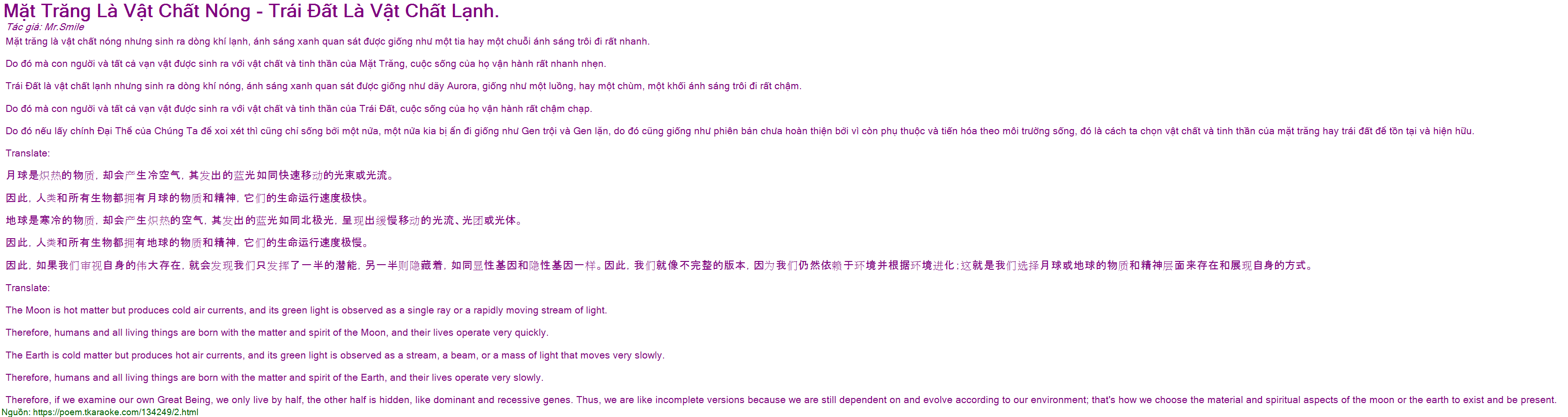 mặt trăng là vật chất nóng - trái đất là vật chất lạnh.