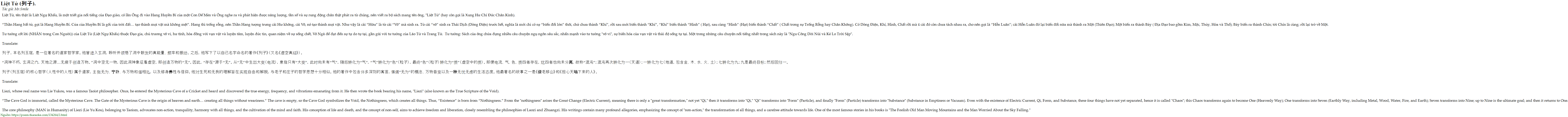 列子,本名列玉寇,是一位著名的道家哲学家。他曾进入玄洞,聆听并领悟了洞中散发的真能量、频率和振动。之后,他写下了以自己名字命名的著作《列子》(又名《虚空真经》)。
