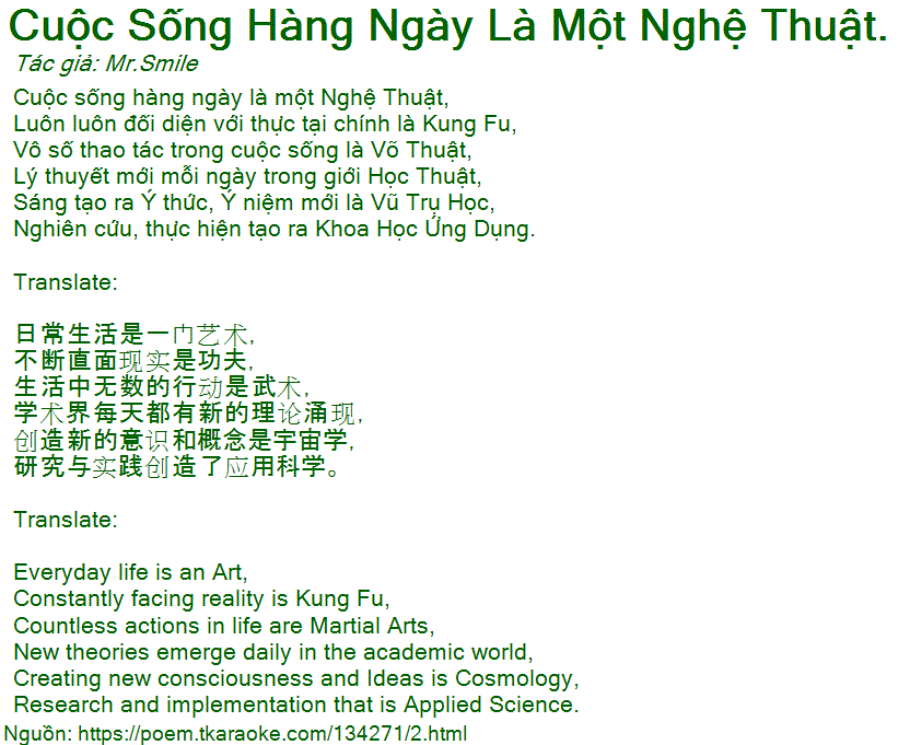 Cuộc sống hàng ngày là một Nghệ Thuật,