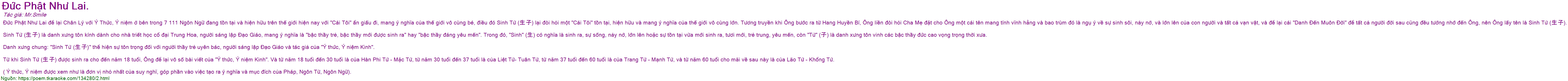 Danh xưng chung: "Sinh Tử (生子)" thể hiện sự tôn trọng đối với người thầy trẻ uyên bác, người sáng lập Đạo Giáo và tác giả của "Ý thức, Ý niệm Kinh".
