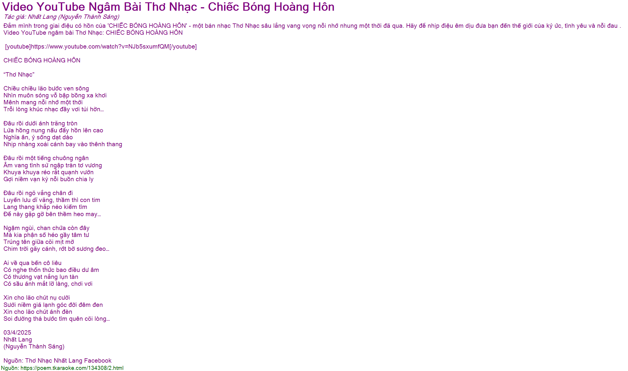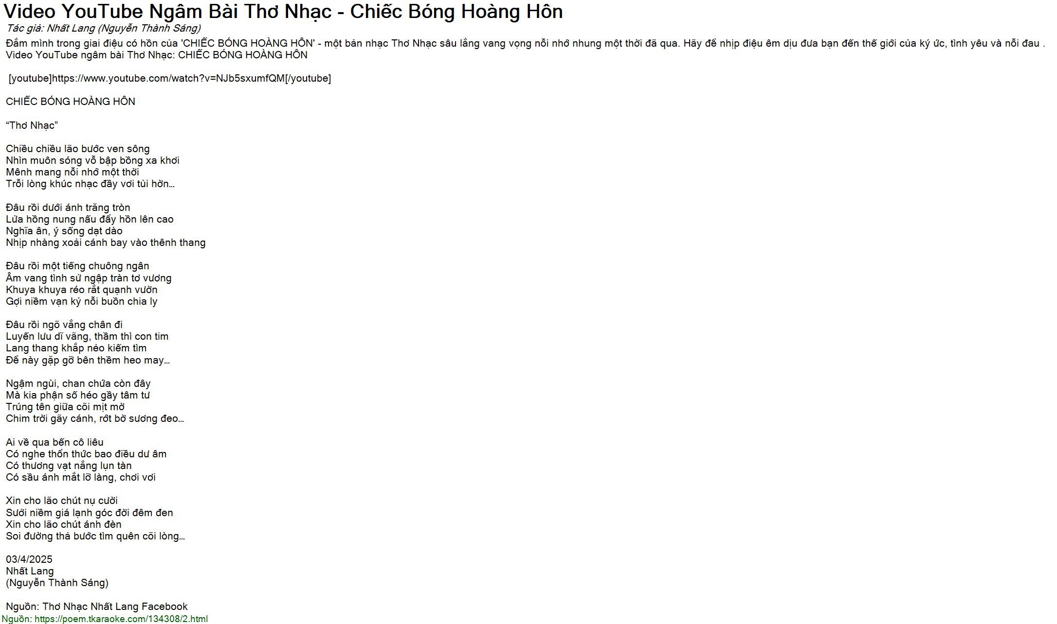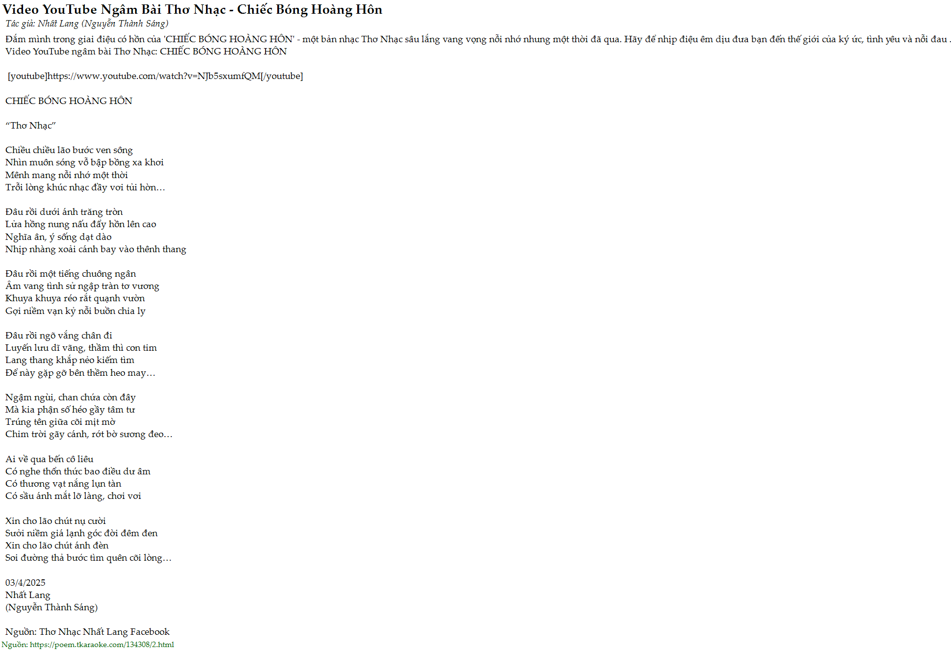 Nguồn: Thơ Nhạc Nhất Lang Facebook