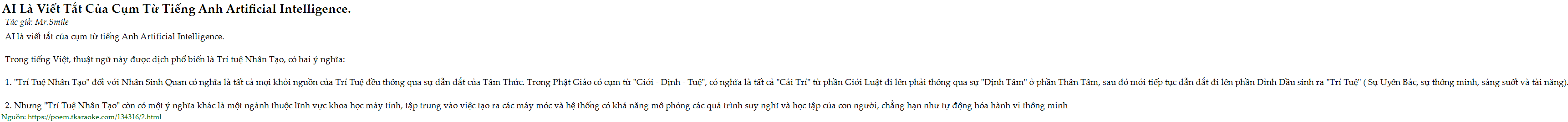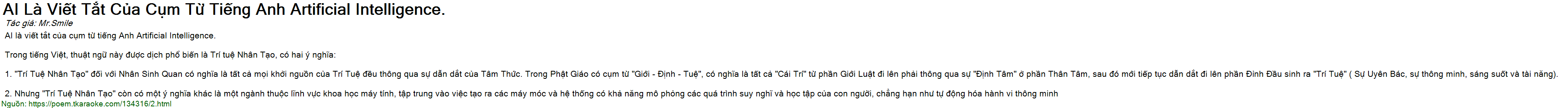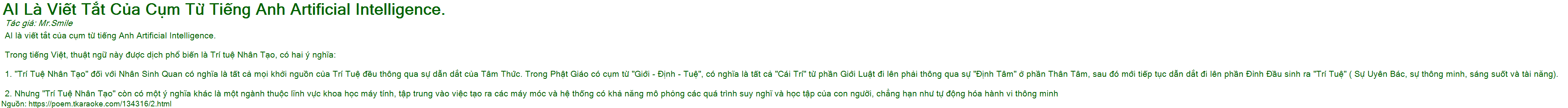 AI là viết tắt của cụm từ tiếng Anh Artificial Intelligence.