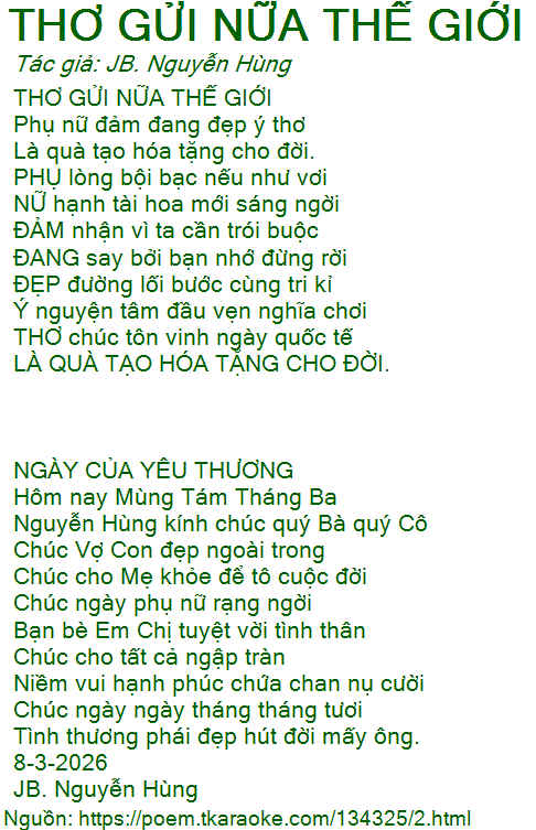 thơ gửi nữa thế giới