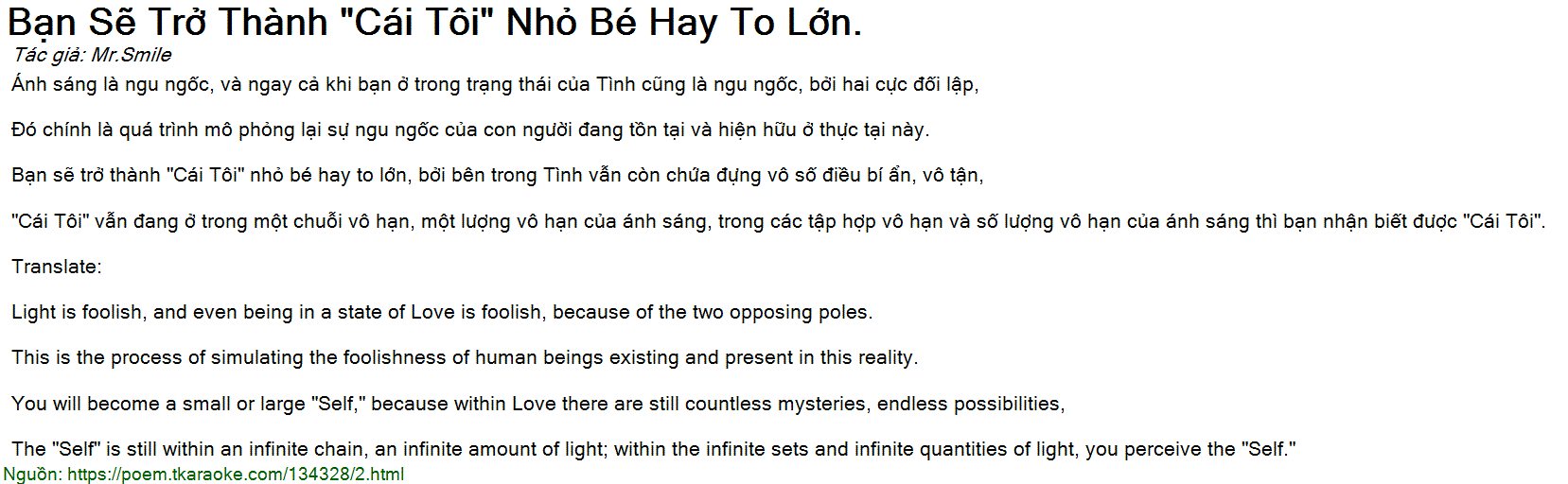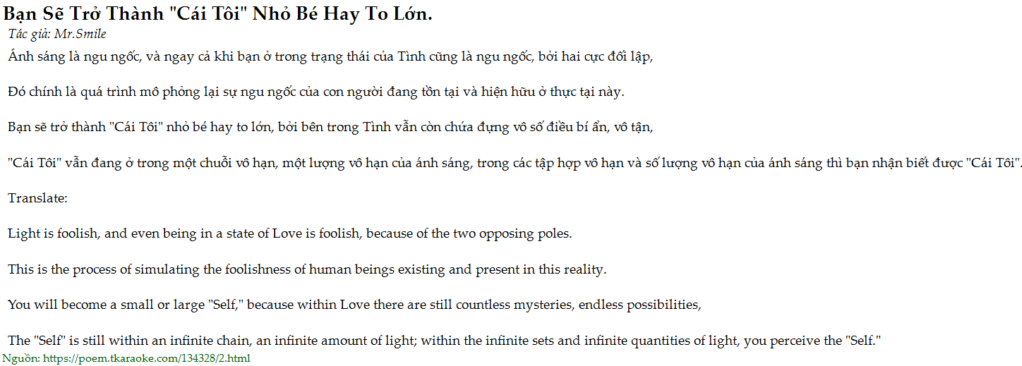 Bạn sẽ trở thành "Cái Tôi" nhỏ bé hay to lớn, bởi bên trong Tình vẫn còn chứa đựng vô số điều bí ẩn, vô tận,