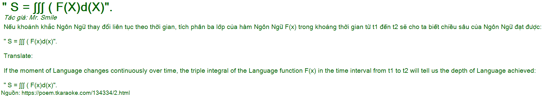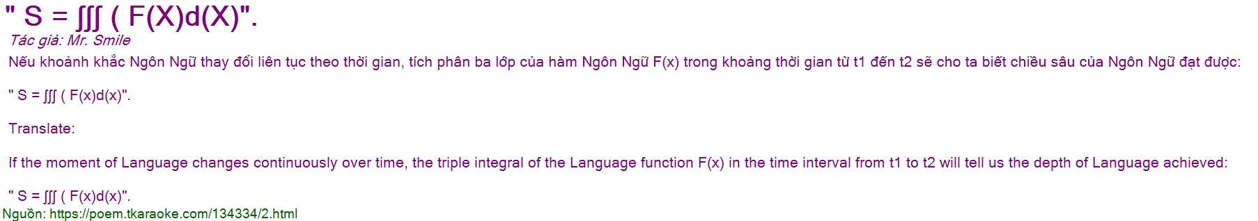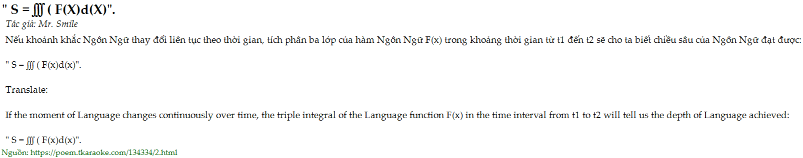 Nếu khoảnh khắc Ngôn Ngữ thay đổi liên tục theo thời gian, tích phân ba lớp của hàm Ngôn Ngữ F(x) trong khoảng thời gian từ t1 đến t2 sẽ cho ta biết chiều sâu của Ngôn Ngữ đạt được: