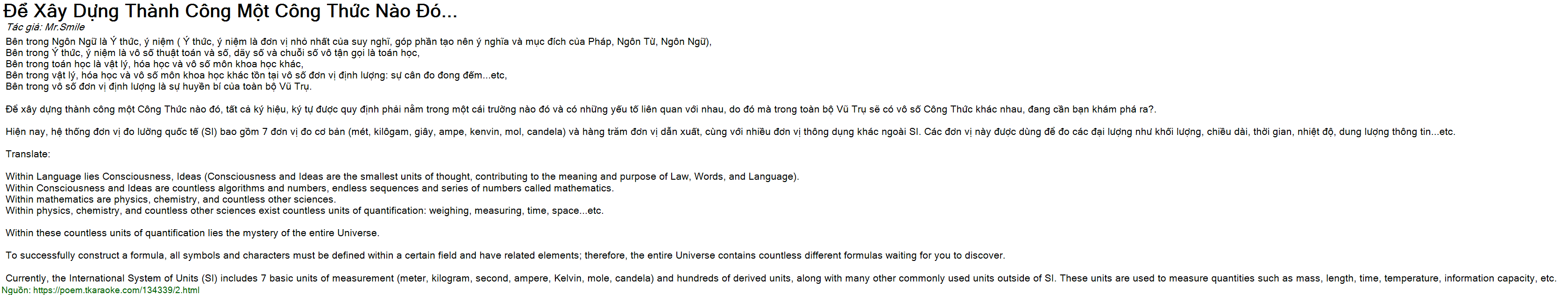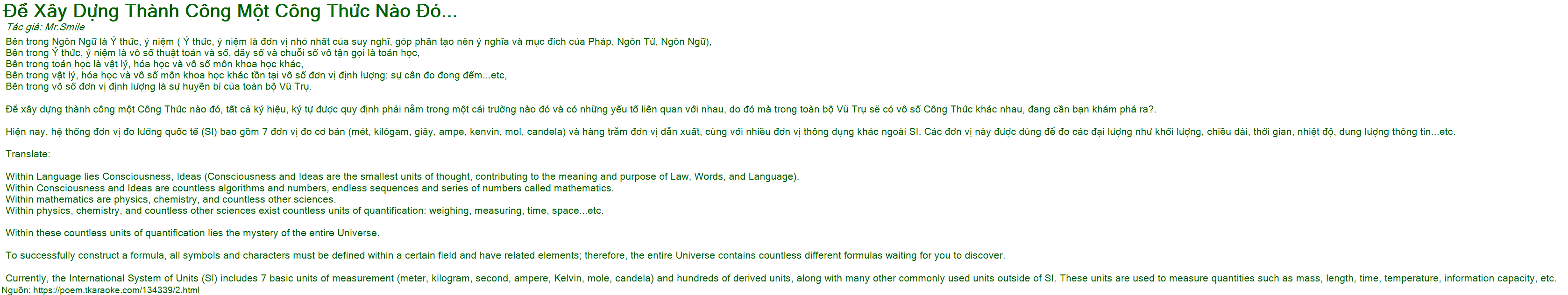 Để xây dựng thành công một Công Thức nào đó, tất cả ký hiệu, ký tự được quy định phải nằm trong một cái trường nào đó và có những yếu tố liên quan với nhau, do đó mà trong toàn bộ Vũ Trụ sẽ có vô số Công Thức khác nhau, đang cần bạn khám phá ra?.