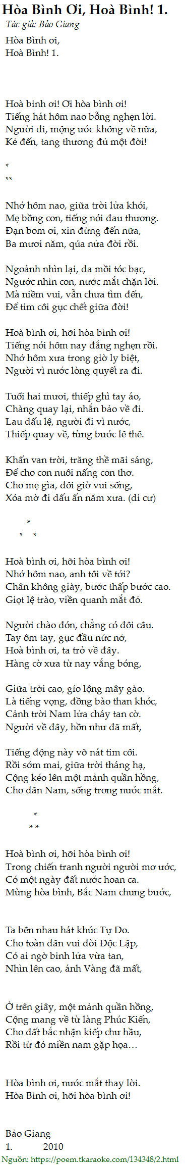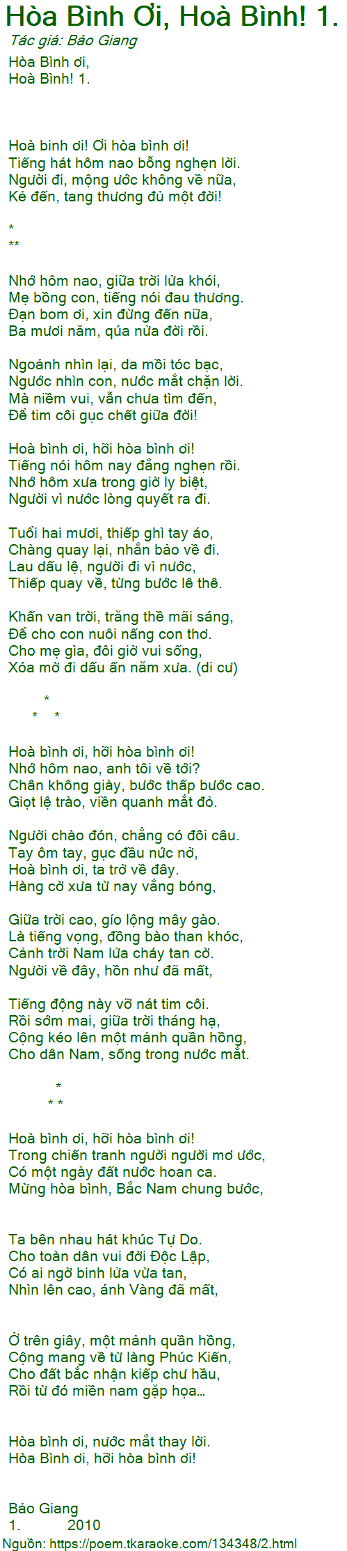 hòa bình ơi, hoà bình! 1.