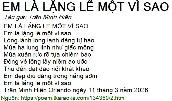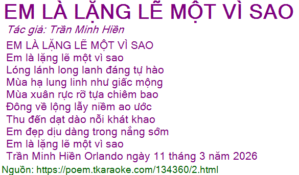 Em là lặng lẽ một vì sao