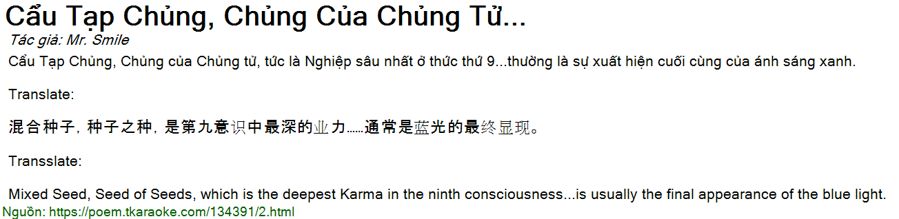 Cẩu Tạp Chủng, Chủng của Chủng tử, tức là Nghiệp sâu nhất ở thức thứ 9...thường là sự xuất hiện cuối cùng của ánh sáng xanh.