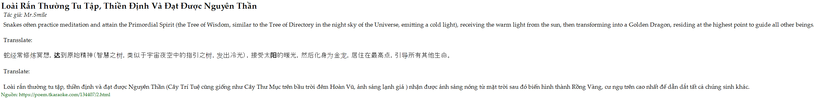 Snakes often practice meditation and attain the Primordial Spirit (the Tree of Wisdom, similar to the Tree of Directory in the night sky of the Universe, emitting a cold light), receiving the warm light from the sun, then transforming into a Golden Dragon, residing at the highest point to guide all other beings.