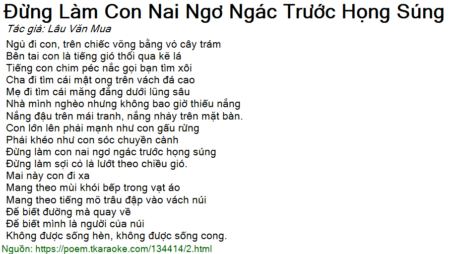 Ngủ đi con, trên chiếc võng bằng vỏ cây trám