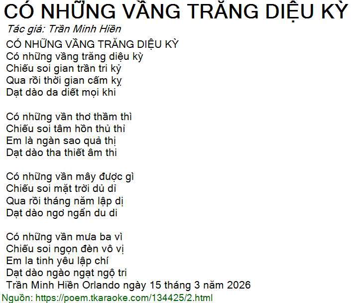 Trần Minh Hiền Orlando ngày 15 tháng 3 năm 2026