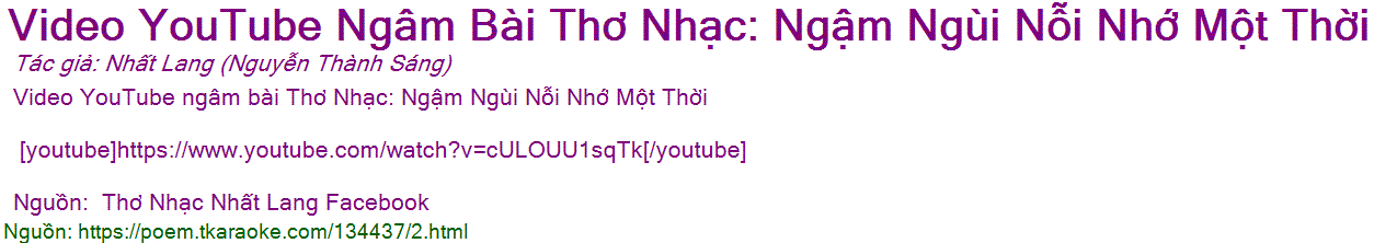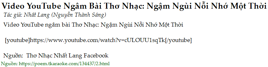 Video YouTube ngâm bài Thơ Nhạc: Ngậm Ngùi Nỗi Nhớ Một Thời