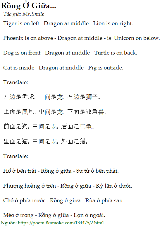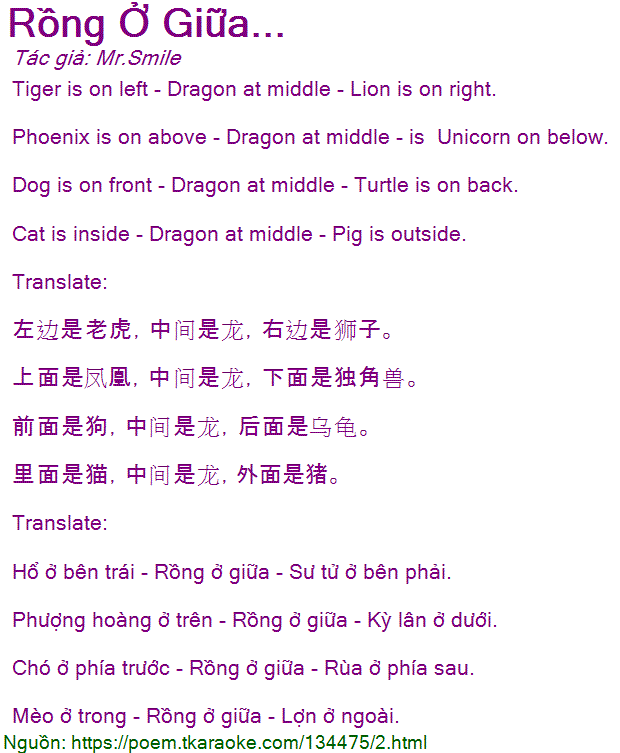 Mèo ở trong - Rồng ở giữa - Lợn ở ngoài.
