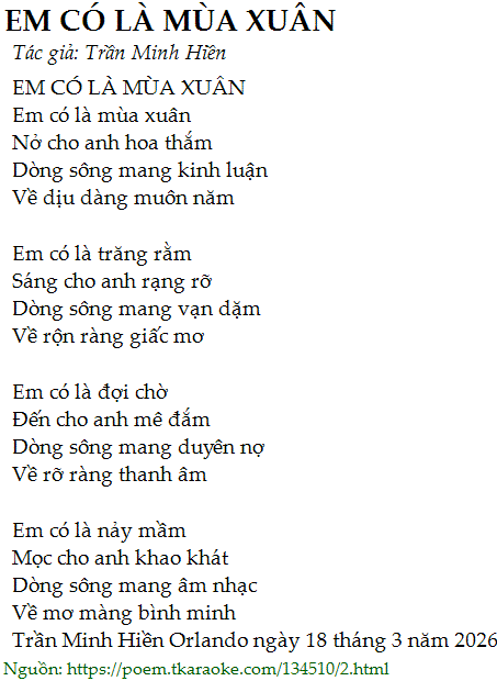 Trần Minh Hiền Orlando ngày 18 tháng 3 năm 2026