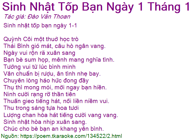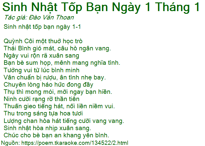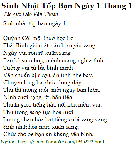 sinh nhật tốp bạn ngày 1 tháng 1