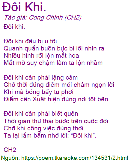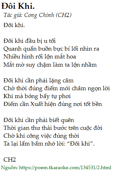 Ta lại lẩm bẩm nhớ lời: “Đôi khi”.