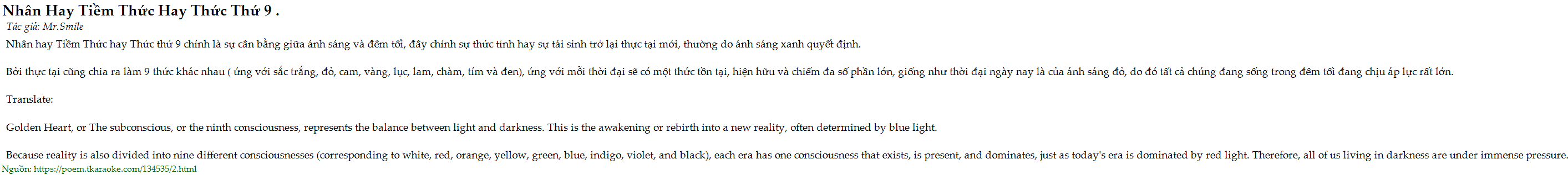 nhân hay tiềm thức hay thức thứ 9 .