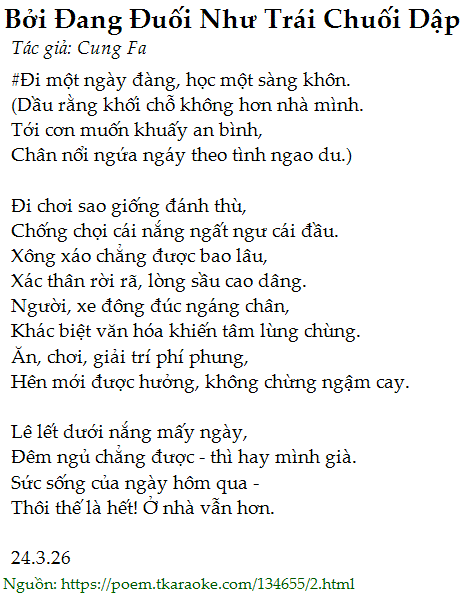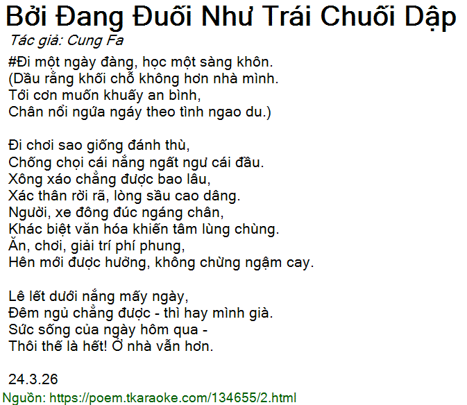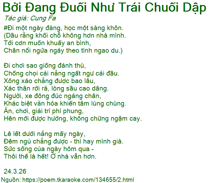 Chân nổi ngứa ngáy theo tình ngao du.)