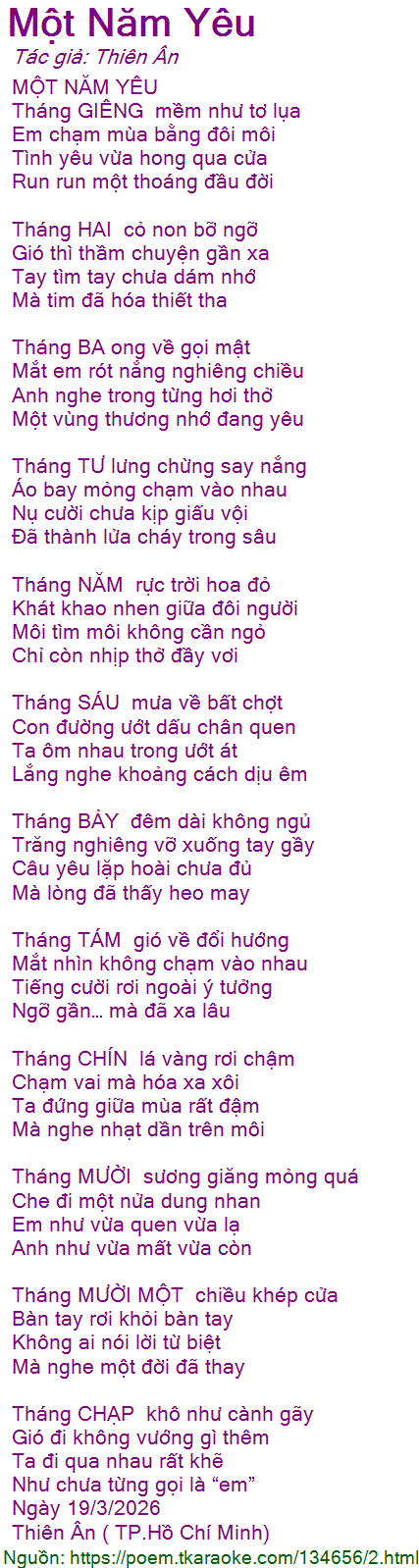 MỘT NĂM YÊU
