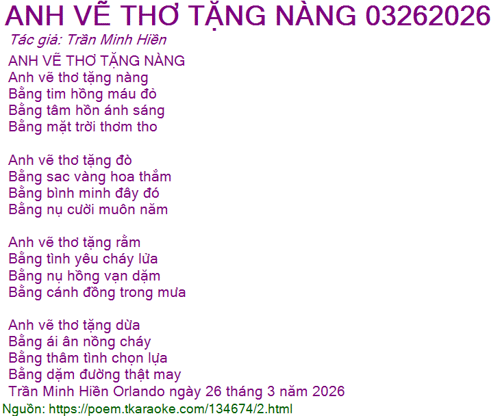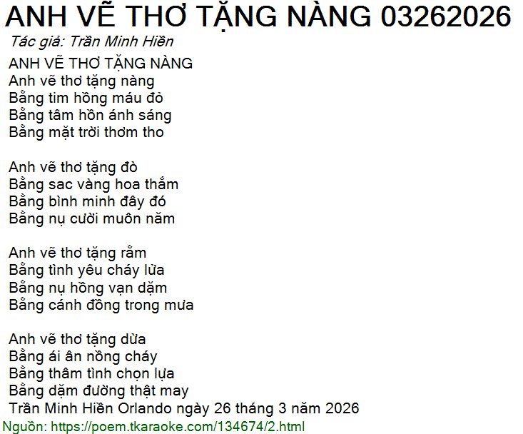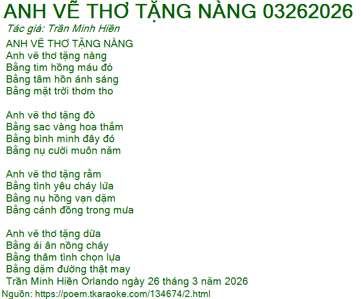 ANH VẼ THƠ TẶNG NÀNG 03262026