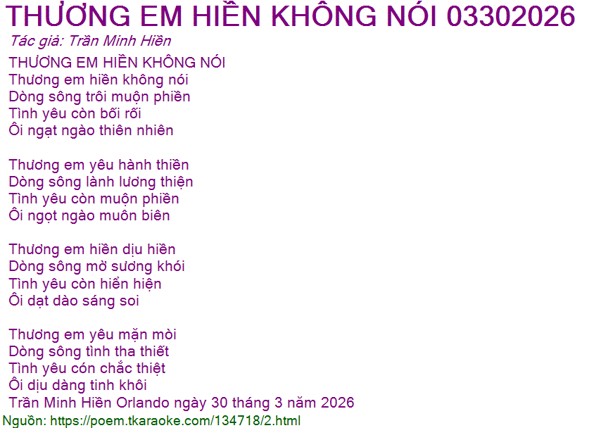 THƯƠNG EM HIỀN KHÔNG NÓI