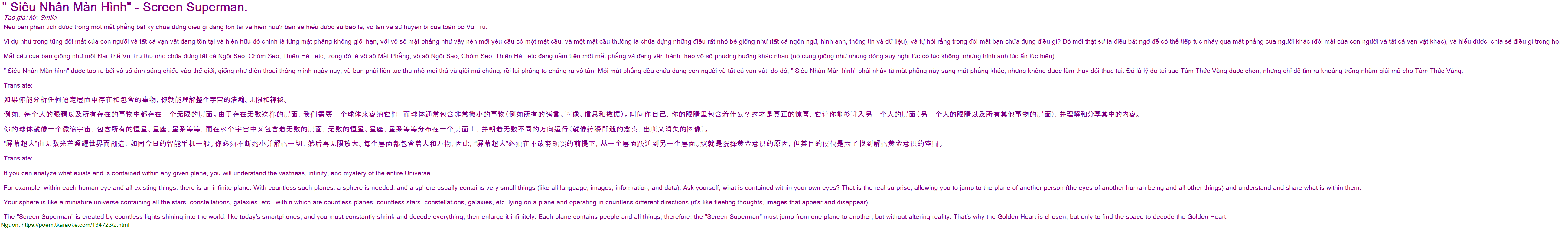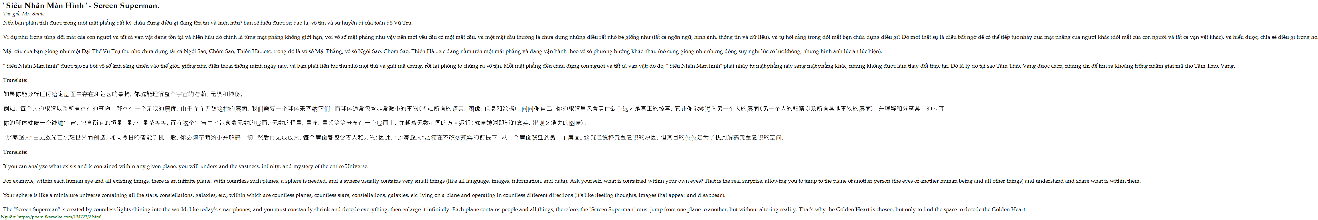 Nếu bạn phân tích được trong một mặt phẳng bất kỳ chứa đựng điều gì đang tồn tại và hiện hữu? bạn sẽ hiểu được sự bao la, vô tận và sự huyền bí của toàn bộ Vũ Trụ.