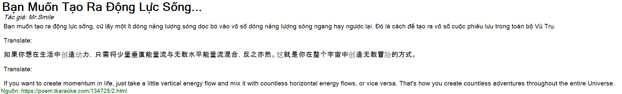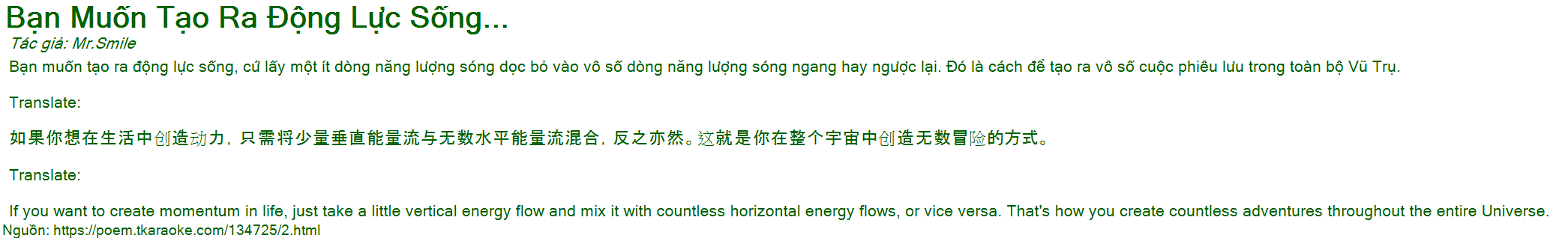 Bạn muốn tạo ra động lực sống, cứ lấy một ít dòng năng lượng sóng dọc bỏ vào vô số dòng năng lượng sóng ngang hay ngược lại. Đó là cách để tạo ra vô số cuộc phiêu lưu trong toàn bộ Vũ Trụ.