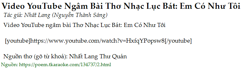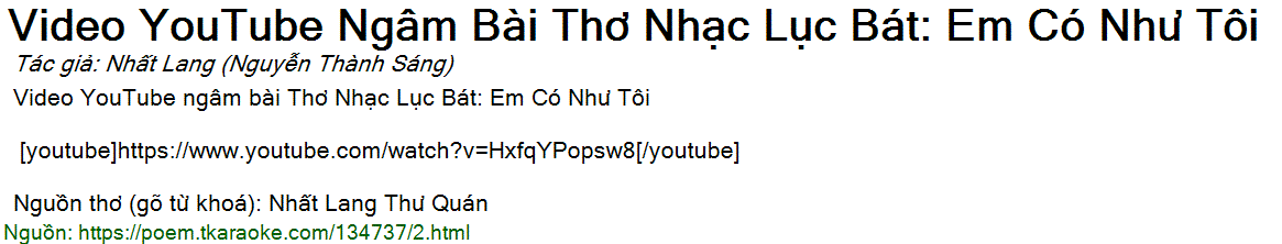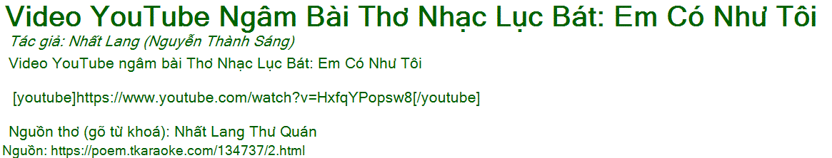Video YouTube ngâm bài Thơ Nhạc Lục Bát: Em Có Như Tôi