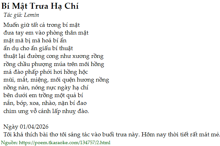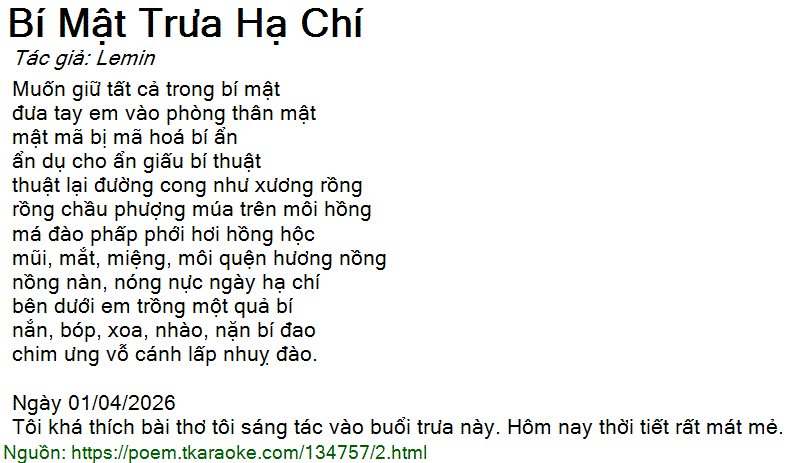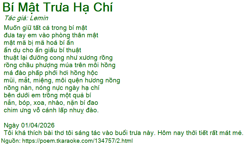 Tôi khá thích bài thơ tôi sáng tác vào buổi trưa này. Hôm nay thời tiết rất mát mẻ.