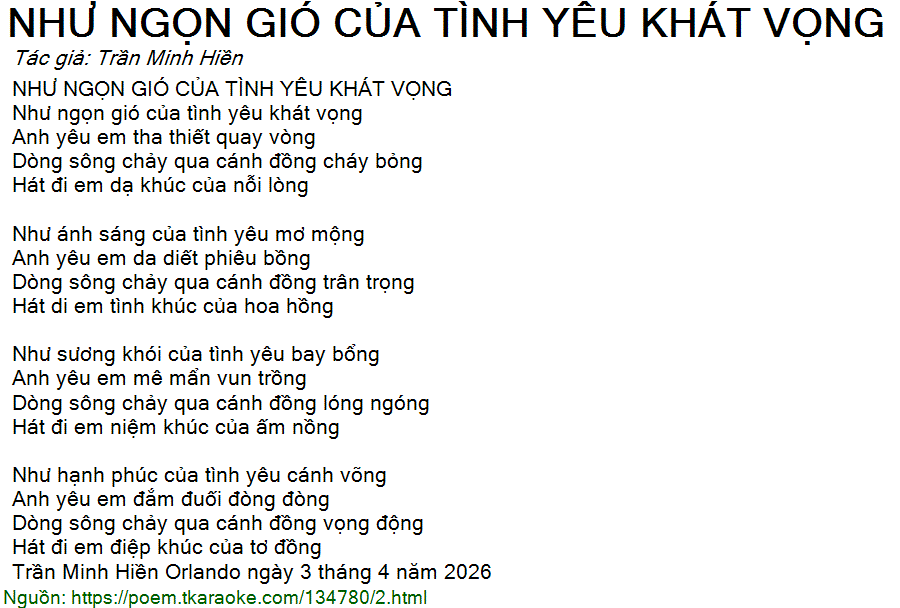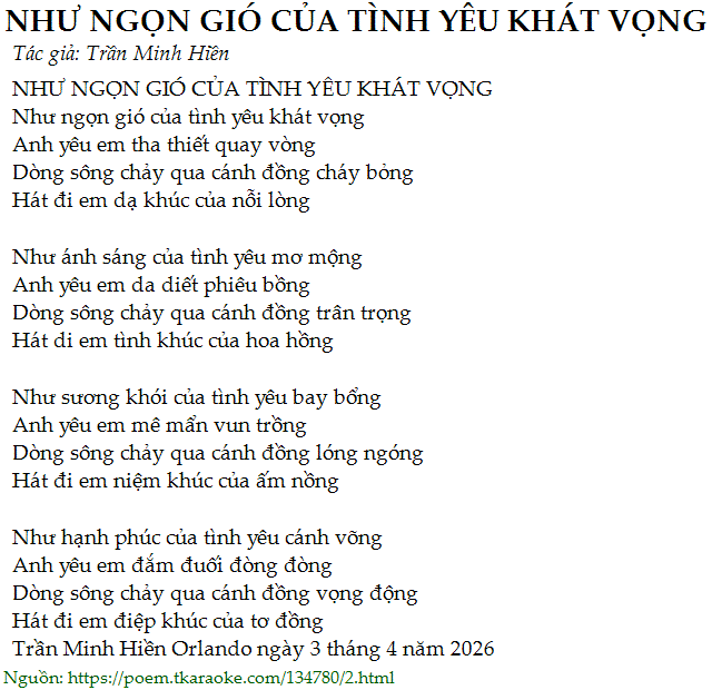 NHƯ NGỌN GIÓ CỦA TÌNH YÊU KHÁT VỌNG